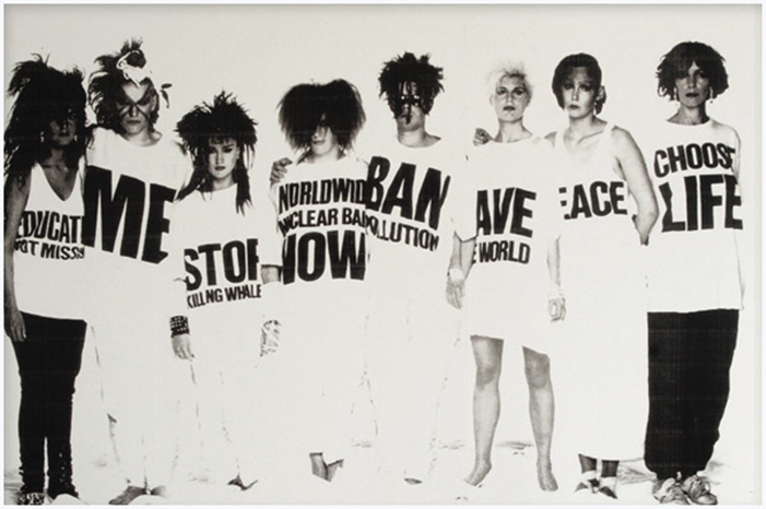 Repercutiu na cultura pop por suas t-shirts oversided com slogans de cunho político, adotadas por artistas como a banda de “new wave” Wham! no videoclipe do hit “Wake Me Up Before You Go-Go”.