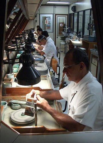 Artesão especializado no engaste das gemas, prendendo-as nas joias com o metal.
