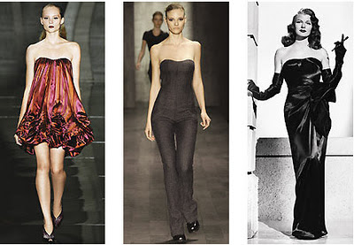 Embora seja uma variação dos corseletes do século 15, o tomara-que-caia como conhecemos hoje surgiu em 1946, quando o figurinista Jean Louis criou um modelo de cetim para a atriz Rita Hayworth usar no filme Gilda.